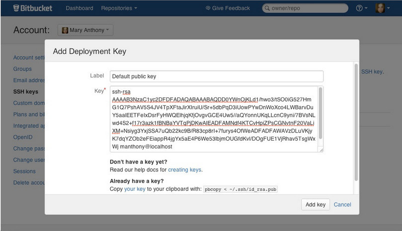 Sistem ini menambahkan kunci ke account Anda. Bitbucket mengirimkan Anda sebuah email