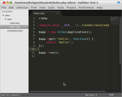 buka browser anda dan buka http://localhost/belajar/silex/web/helloword